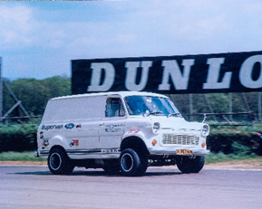 La primera Transit Supervan debutó en Brands Hatch un lunes de Pascua en 1971. Esta "joya sobre ruedas" se basaba en un Ford GT40 y estaba propulsada por un motor V8 de 5.0 litros. Podía alcanzar una velocidad máxima de 240 kilómetros por hora.