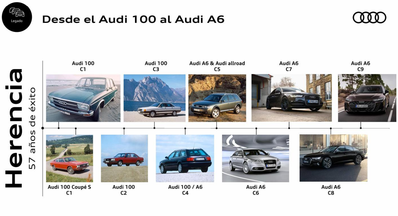 Con una herencia de 57 años de éxito desde el Audi 100 hasta el A6, la marca de los cuatro aros continúa su importante ofensiva de producto. La modernización y el rejuvenecimiento de la gama forma parte de la “Agenda Audi”, con la que la marca se posiciona de cara al futuro. El nuevo A6 Sedán se basa en la Plataforma Premium de Combustión (PPC). La arquitectura electrónica E³ 1.2 garantiza una avanzada conectividad, actualizaciones y funciones de digitalización en todos los nuevos modelos.