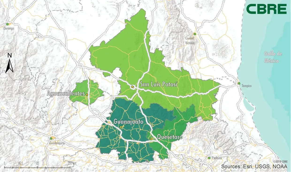 La construcción de espacios en SLP va en aumento gracias a la apertura en el 2T de la planta de BMW, pero esta solo supera los 10 mil m2 al 3T 2019. El inventario de este estado creció un 4% comparado con el 3T de 2018 pero se espera cierre el 2019 con una mayor demanda de espacios y los 115 mil m2 de proyectos en construcción para proveedores de la armadora alemana. Precio por metro cuadrado: 4.2 dólares (el más alto de la región).