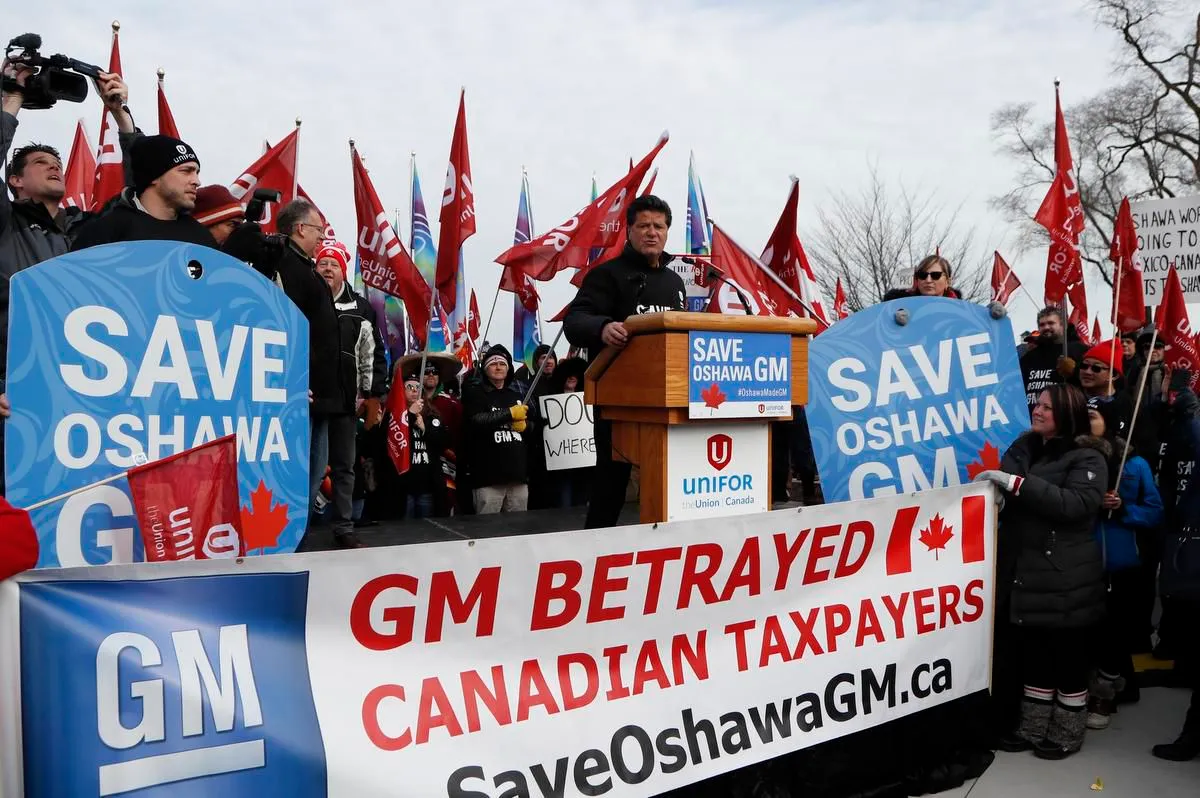 'Esto es suficiente. Necesitamos recordar que, cuando GM nos necesitaba más, estábamos allí para ayudarles. Les pedimos a los canadienses que hagan frente a la avaricia corporativa, les pedimos que hagan frente a Greedy Motors (Motores Avaros)'.