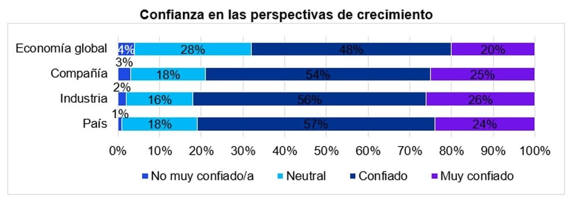 Los hallazgos revelan que, aunque la confianza en la economía global ha descendido a niveles similares a los registrados durante la pandemia, 79% de las y los directores generales (CEO, por sus siglas en inglés) se mantienen optimistas respecto al futuro de sus organizaciones.
