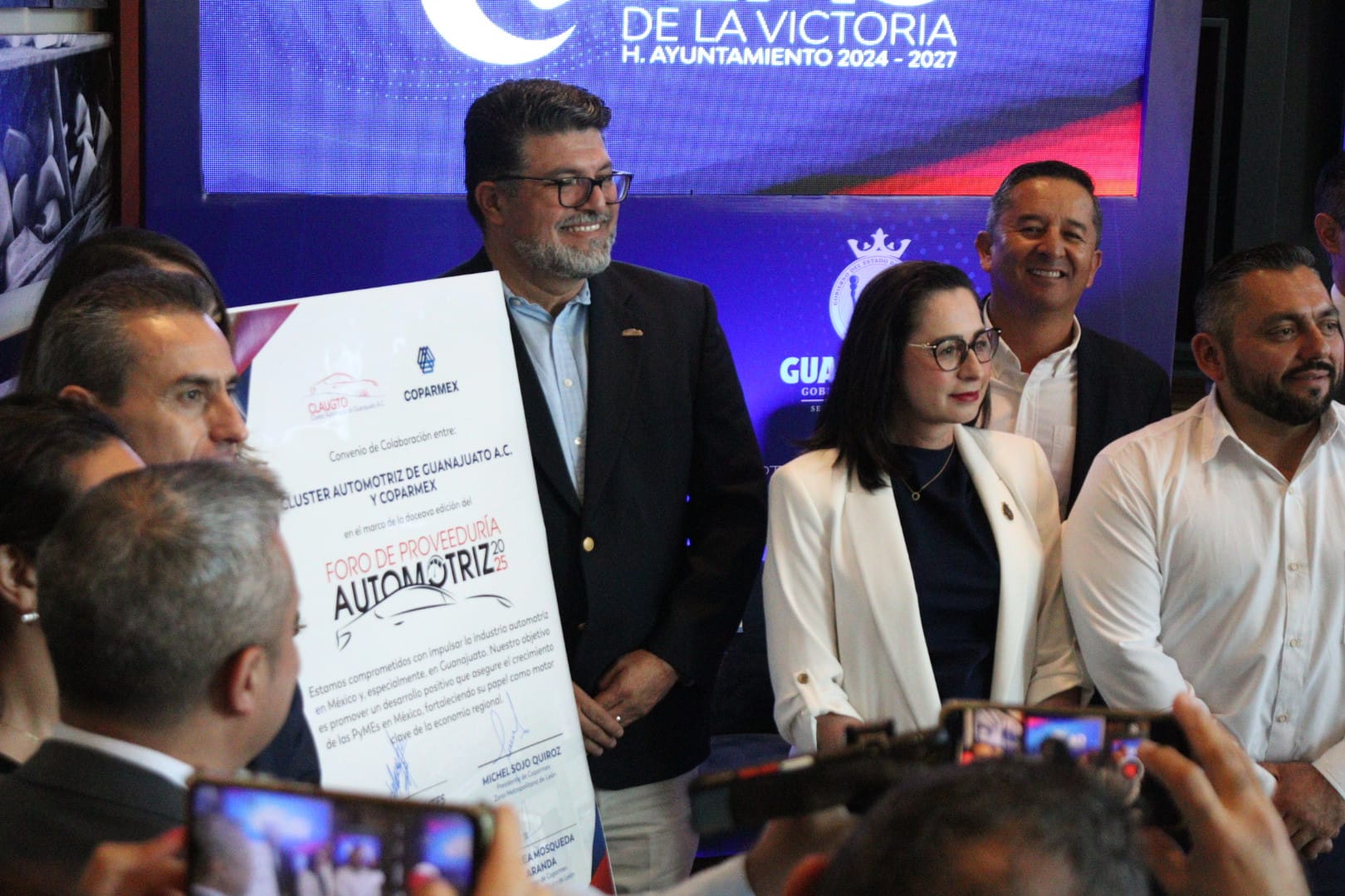 En el anuncio participaron Claudia Cristina Villaseñor Aguilar, secretaria de Economía del Gobierno del estado de Guanajuato, en representación de la gobernadora Libia Dennise García Muñoz Ledo; Carlos Talamantes, presidente de CLAUGTO; Juan Pablo Becerra, director general de Economía de León, en representación de la alcaldesa Alejandra Gutiérrez; Alexandra Huitrón, North America Purchasing Director de BOS Automotive y presidenta de la Comunidad de Compras CLAUGTO; Gerardo Orozco, director general del Grupo Piscis; y Ricardo Rincón, director de Ecogroup y miembro del Consejo de la Comunidad de Proveedores de CLAUGTO.