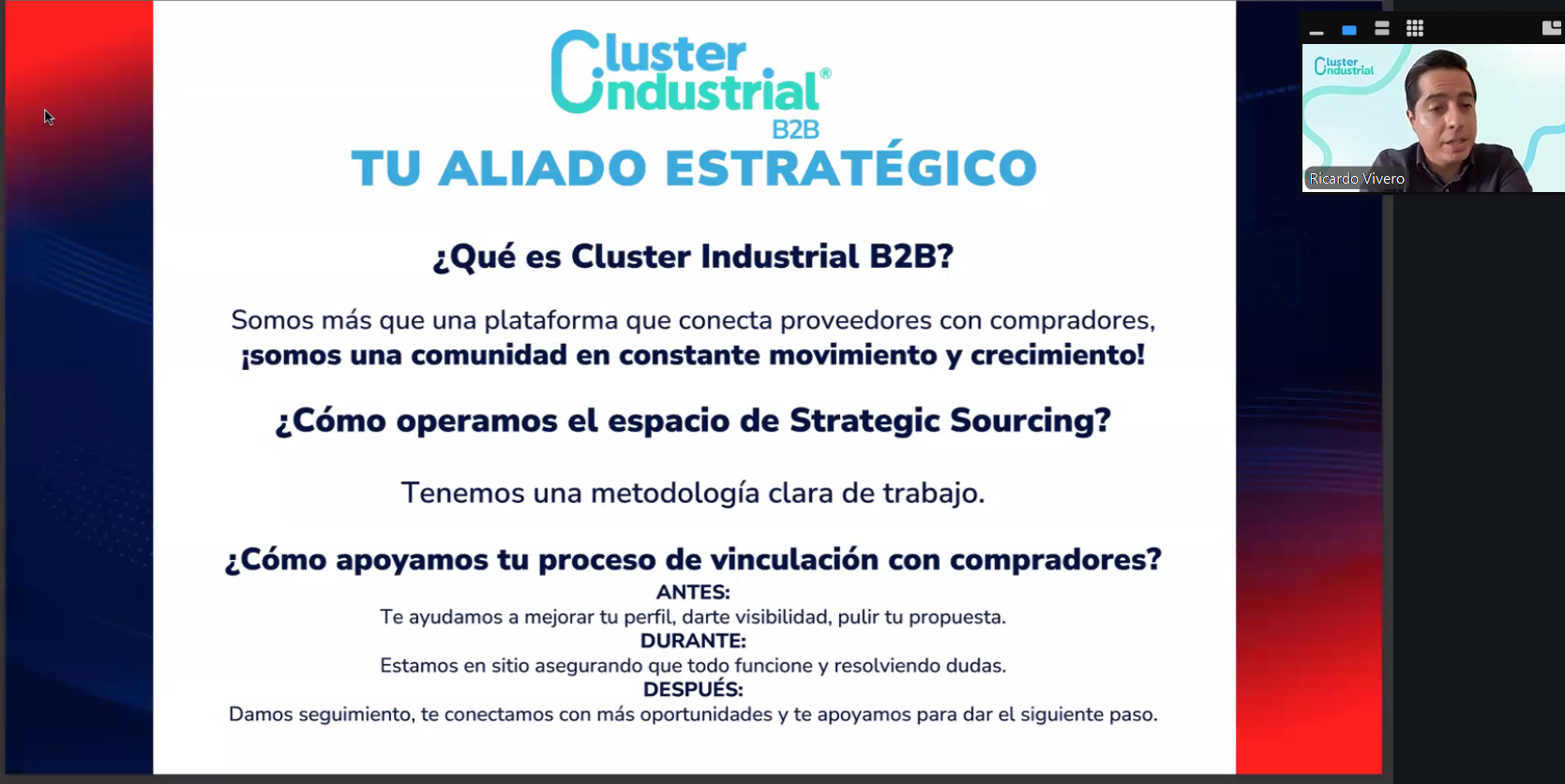 León, Guanajuato, 27 de agosto de 2025.- El Clúster Automotriz de Guanajuato (CLAUGTO) llevó a cabo el webinar Claves para capitalizar las oportunidades de negocios en el Foro de Proveeduría Automotriz 2025, una charla que sirvió de antesala al encuentro de negocios más relevante para la cadena automotriz en México y América Latina, el cual se celebrará los días 10 y 11 de septiembre en el Poliforum León. La sesión fue impartida por Ricardo Vivero, CEO de Cluster Industrial, y Laura Salas, Senior Indirect Buyer de American Axle Manufacturing, quienes compartieron perspectivas y recomendaciones para que los proveedores aprovechen al máximo el evento.