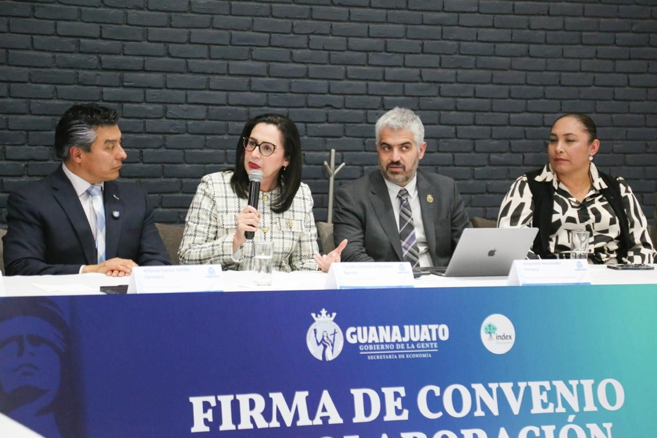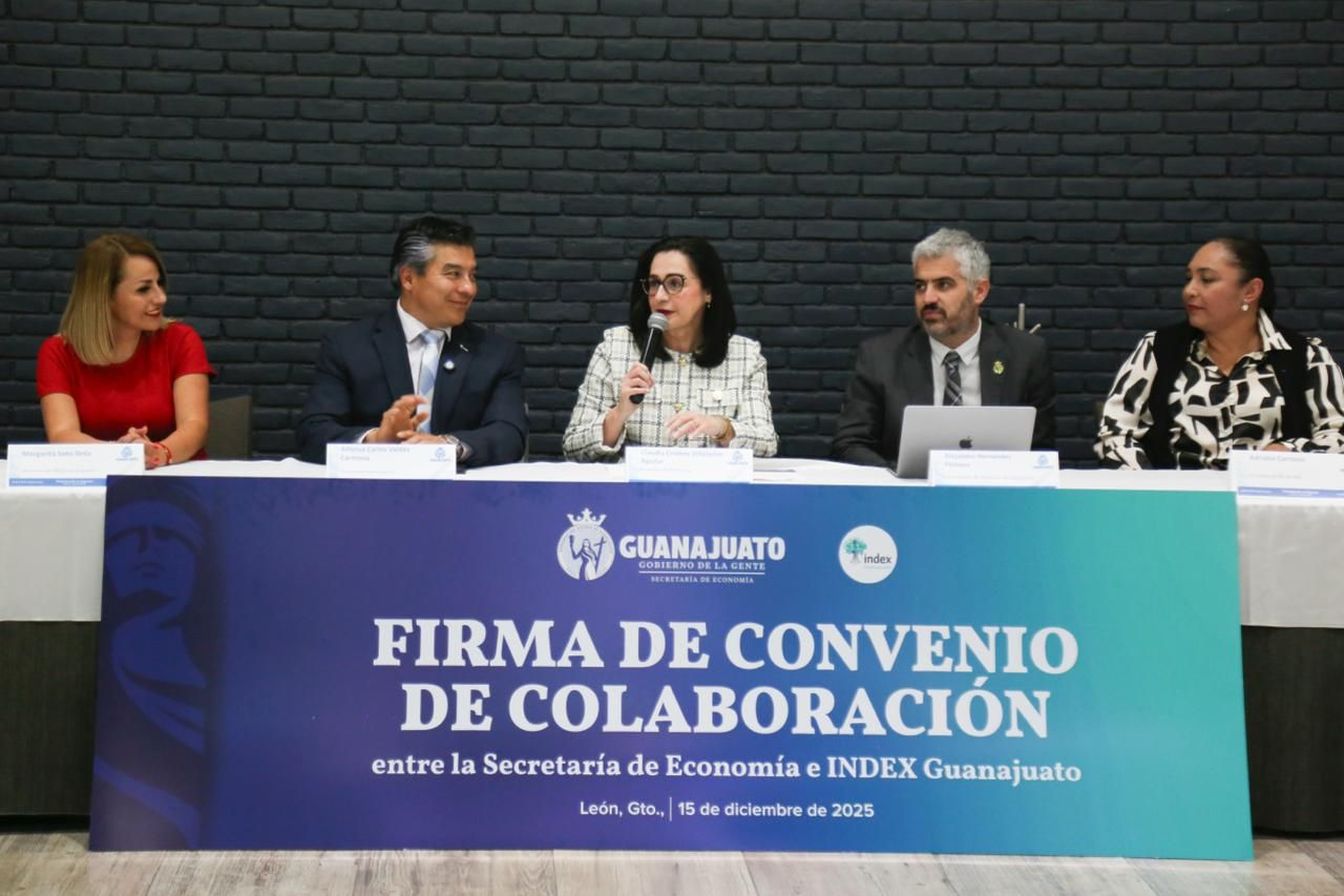 León, Guanajuato, 16 de diciembre de 2025.- La Secretaría de Economía del estado de Guanajuato e Index Guanajuato firmaron un convenio de colaboración con el objetivo de fortalecer la atracción de inversiones y facilitar que un mayor número de empresas, ya instaladas o en proceso de instalación en la entidad, accedan al Programa IMMEX, considerado uno de los instrumentos clave para impulsar la actividad exportadora y la competitividad industrial del estado.