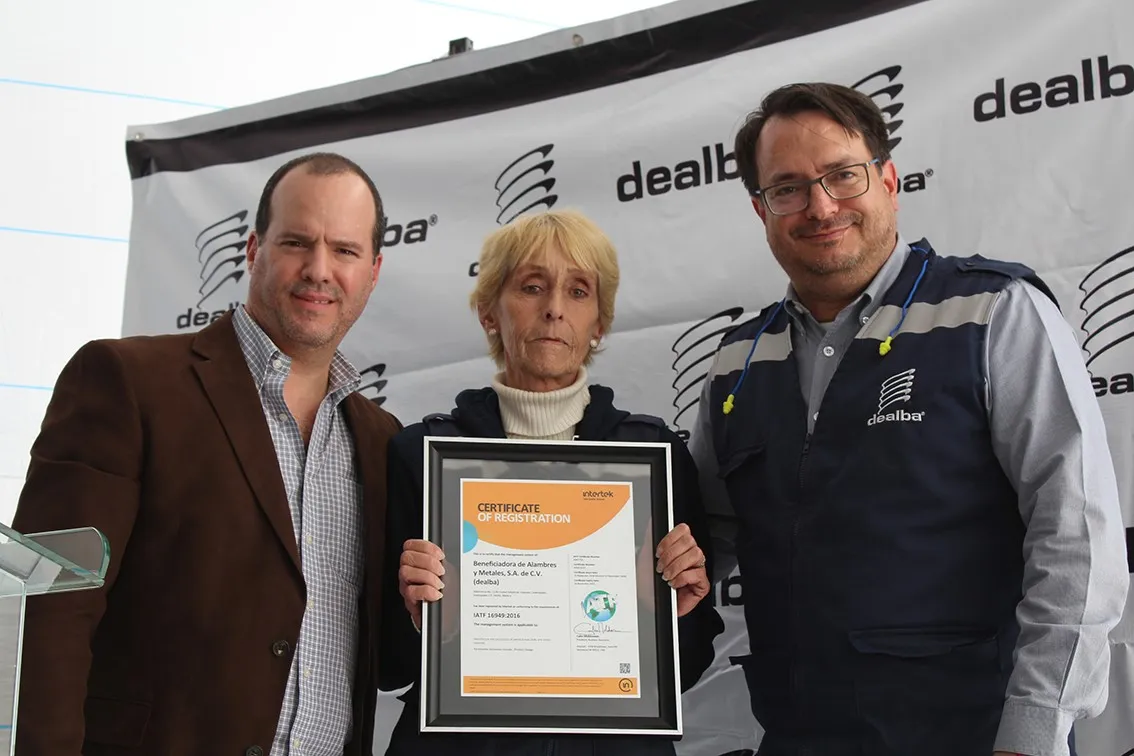 En Irapuato, la empresa Beneficiadora de alambres y metales S.A. de C.V. (Grupo Dealba) recibió la certificación internacional de Sistemas de Gestión de Calidad (SGC) IATF -16949:2016 del sector automotriz, confirmando su compromiso con la calidad de sus productos para esta industria.