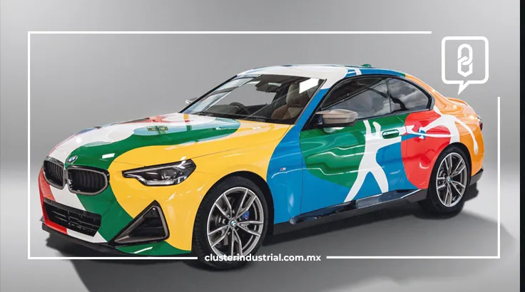 San Luis Potosí, México, a 14 de septiembre de 2021. Para celebrar el inició de producción del nuevo BMW Serie 2 Coupé, en BMW Group Planta San Luis Potosí, la marca presentó un vehículo intervenido por el artista plástico potosino Bosco y con la realización de Luis Esquivel y David Fernandes, asociados del área de pintura de la planta.