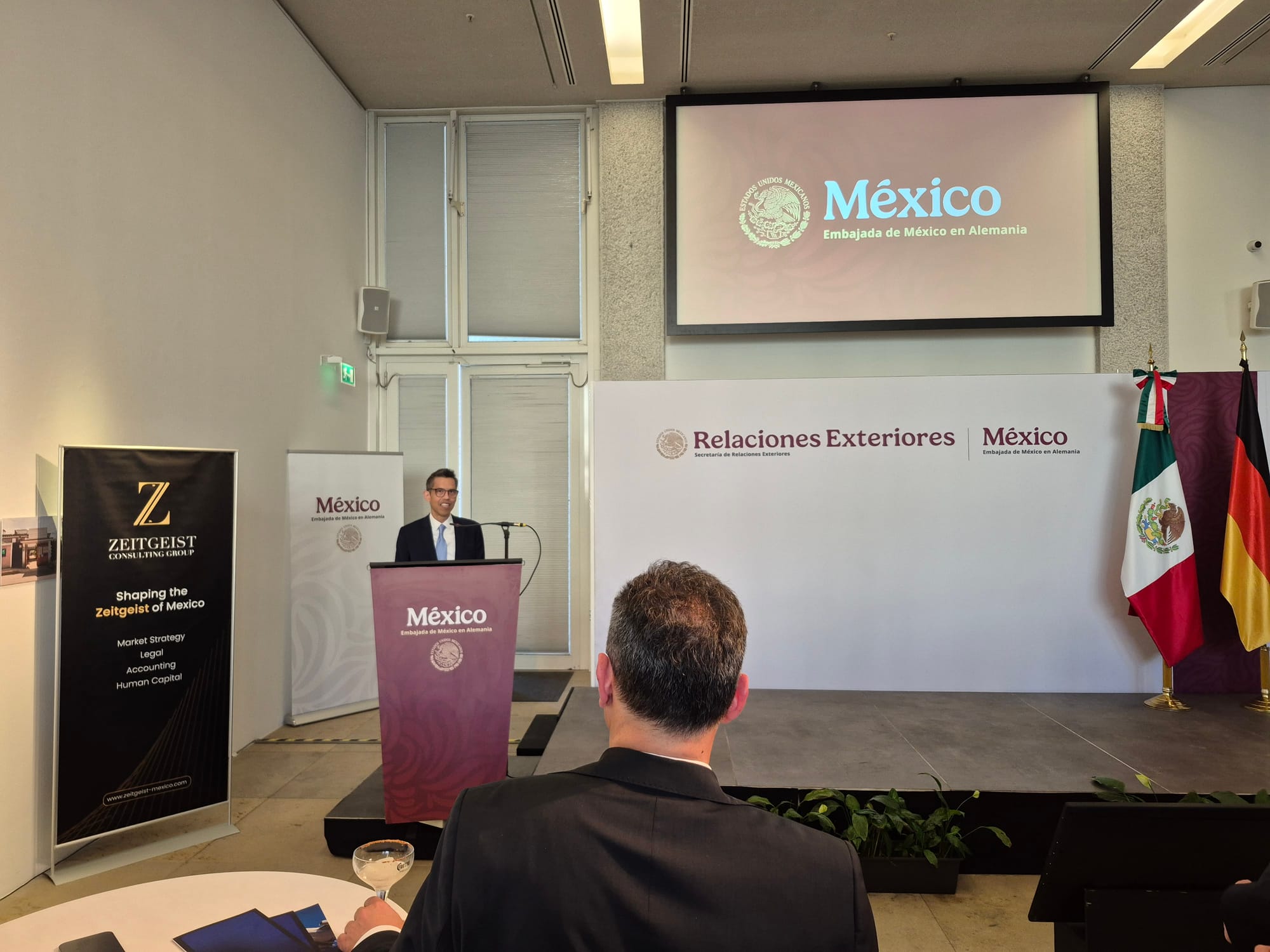 El encuentro, realizado en la sede de la Embajada de México en Berlín, reunió a cerca de 100 representantes del sector empresarial, autoridades gubernamentales y actores clave del ecosistema industrial alemán y mexicano. Entre los asistentes destacaron el Embajador de México en Alemania, Francisco Quiroga; el Dr. Christian Forwick, representante del Ministerio Federal de Economía y Energía de Alemania (BMWE); así como los secretarios de desarrollo económico Luis Eduardo Olivares Martínez, del Estado de Coahuila, y Esaú Garza de Vega, del Estado de Aguascalientes.