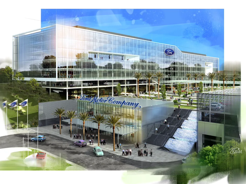 El diseño del gran centro tecnológico fue obra del despacho de arquitectos JON International. Se trata de un edificio inteligente con 41 mil metros cuadrados de oficinas y 20 mil metros cuadrados para pruebas y desarrollo de productos de Ford.
