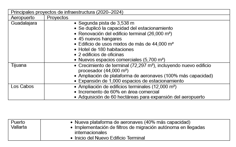 Entre 2020 y 2024, GAP ha invertido más de 32 mil millones de pesos en el fortalecimiento de su infraestructura aeroportuaria, lo que ha permitido implementar tecnología de última generación y ampliar la capacidad operativa en toda su red.