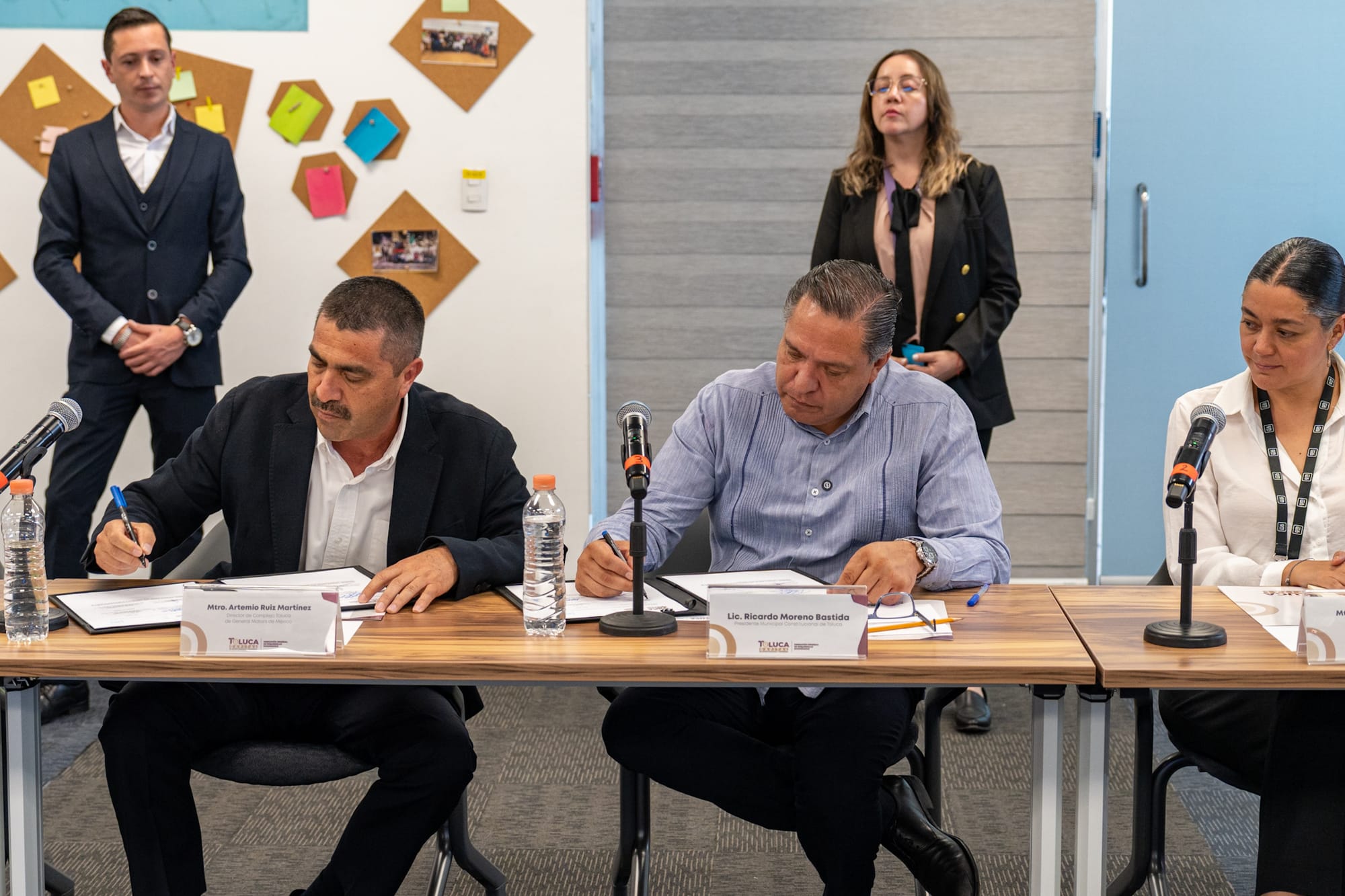 Toluca, Estado de México, 28 de abril de 2025.- El gobierno municipal de Toluca firmó un convenio de colaboración con General Motors México (GMM), con el objetivo de sumar esfuerzos en la recuperación de espacios públicos, fortalecer la seguridad en zonas industriales y promover el desarrollo económico de la capital mexiquense.
