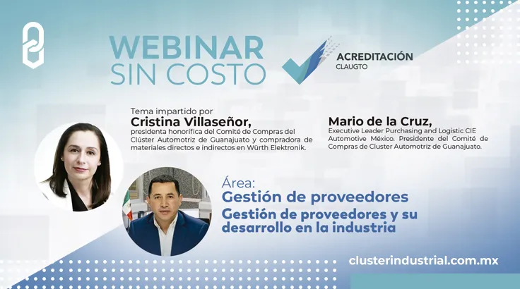 En este caso se abordó el área de “Gestión de proveedores” y participaron como ponentes: Cristina Villaseñor, presidenta honorífica del Comité de Compras del Cluster Automotriz de Guanajuato y compradora de materiales directos e indirectos en Würth Elektronik y Mario de la Cruz, presidente del Comité de Compras de Cluster Automotriz de Guanajuato y purchasing and logistic corporate manager en CIE Automotive Mexico.Cristina comentó que se puede resumir el desarrollo de proveedores en 5 pasos:· Definir capacidades del proveedor: cumplimiento de estándares que tiene la industria (proveedores en riesgo, proveedores en desarrollo, etc.). Volumen, mezclas, requisitos del producto…· Definir el criterio de evaluación: Requisitos legales y de mejora, precios, entregas, capacidades financieras, etc.· Evaluación de proveedores· Plan de mejora: Seguimiento que los proveedores tienen que hacer dentro de la organización para que se vuelvan más confiables.· Seguimiento y auditoría: El cliente revisa la aplicación de todos los requisitos.Destacó lo relevante que es para las empresas compradoras, que las proveedoras cuenten con un sistema de evaluación para poder determinar los riesgos y si puede convertirse en un socio comercial.Por su parte, Mario de la Cruz, abordó el tema de la ventaja competitiva, la cual consiste en lograr diferenciarse de otras empresas de una manera positiva.Para ello, abordó las estrategias y objetivos en los que se basa CIE Automotive, ilustrando el caso práctico de cómo manejan la gestión de proveedores.Añadió que CIE Automotive da preferencia los proveedores locales, en caso de no encontrar, entonces buscan regionales y posteriormente, de ser necesario, buscan a nivel nacional e internacional.