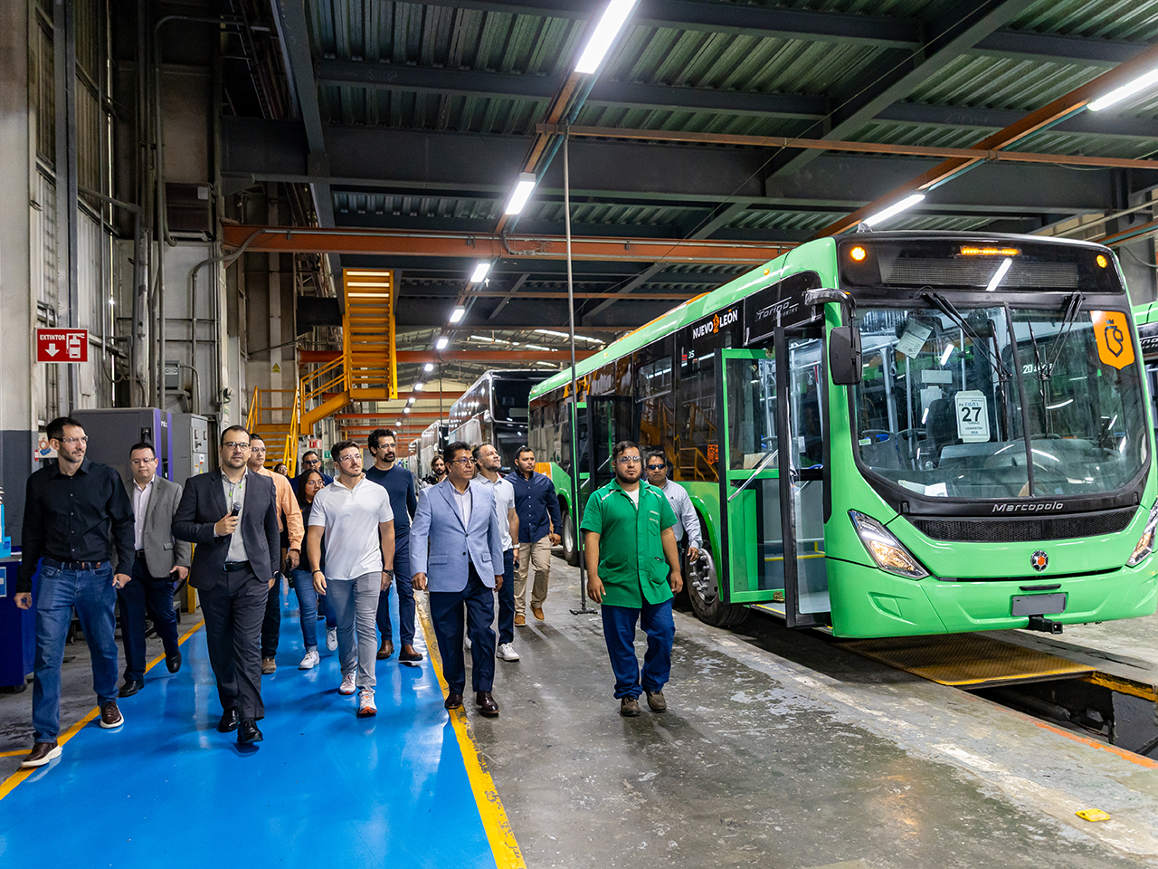 García, Nuevo León, 28 de julio de 2025- Como parte de la estrategia del Gobierno del Estado de Nuevo León para mejorar el servicio de transporte público, el Gobernador Samuel Alejandro García Sepúlveda supervisó este lunes la producción de nuevas unidades de transporte de primer mundo, en la Planta Volvo-Marcopolo, manufacturadas 100 por ciento en Nuevo León con mano de obra y proveeduría local.