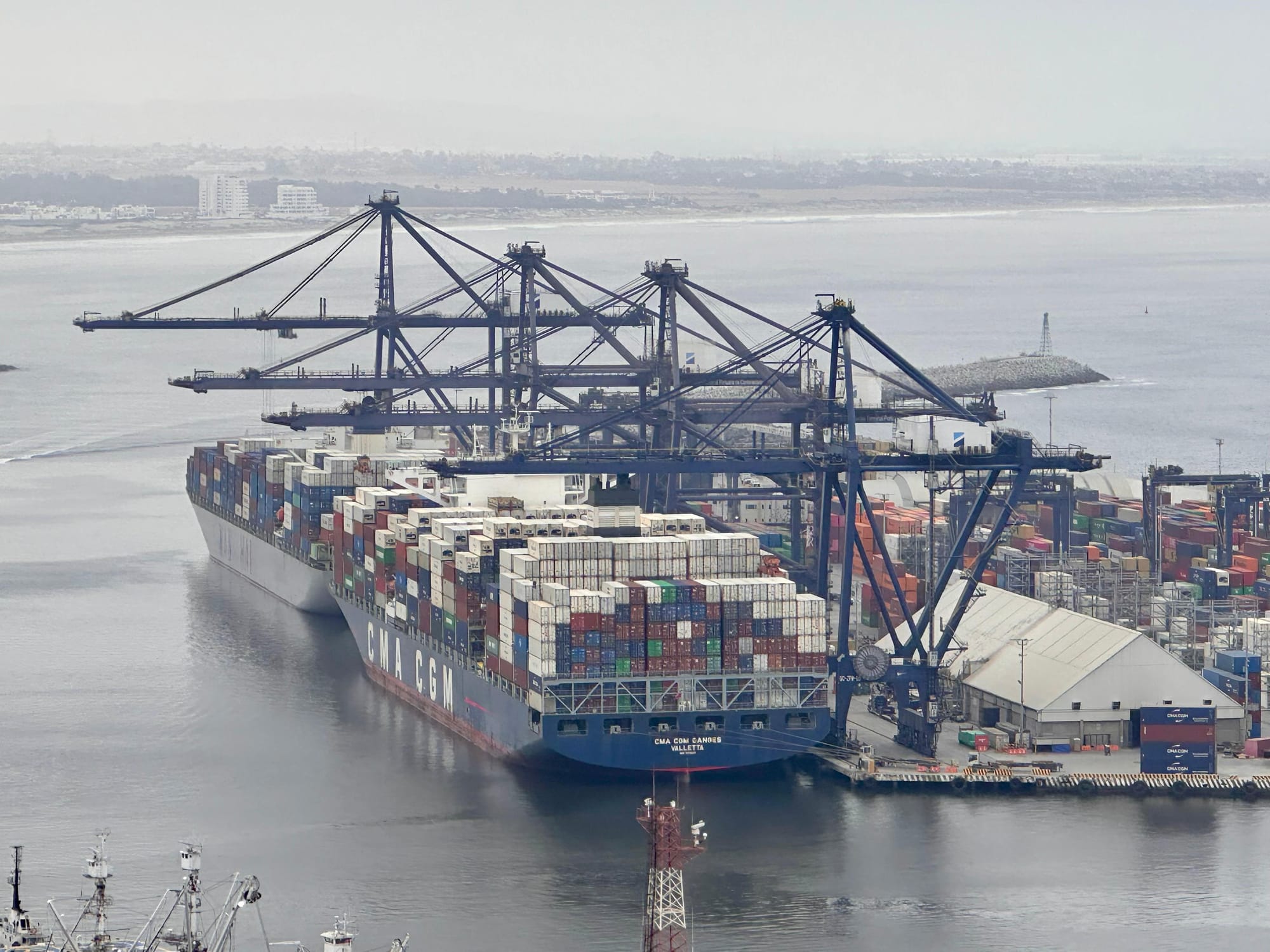 La clave detrás de este avance fue la expansión del muelle a 600 metros de longitud y la reciente incorporación de una grúa Super Post Panamax, que permitió atender ambos barcos de forma simultánea. Con esta, la Terminal ahora cuenta con cuatro grúas de muelle super post panamax y una zona de maniobras más amplia.