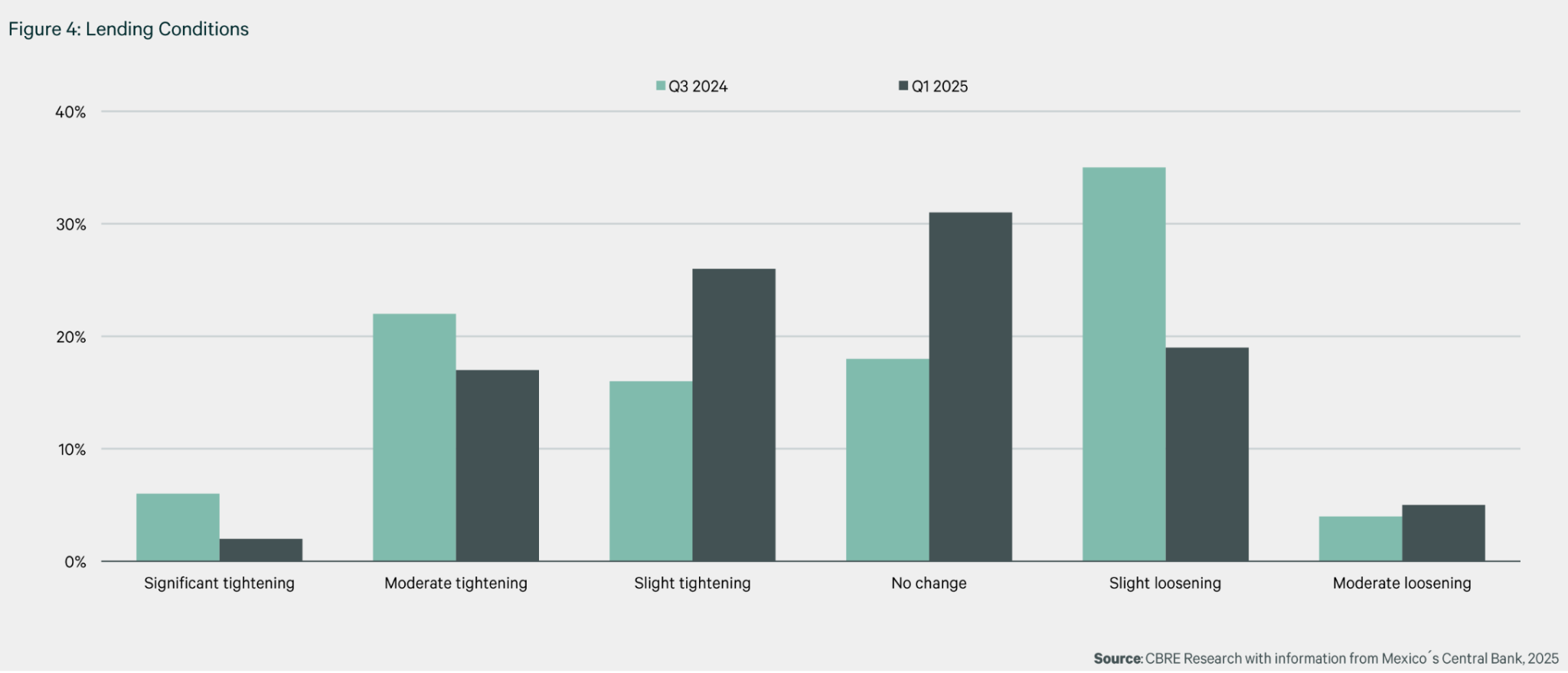 Los inversionistas no esperan cambios en las condiciones de los préstamos bancarios. En marzo de 2025, el Banco Central de México (Banxico) bajó su tasa clave al 9.0 %. Esta decisión fue influenciada por una disminución de la inflación y las preocupaciones sobre la desaceleración del crecimiento económico mundial.