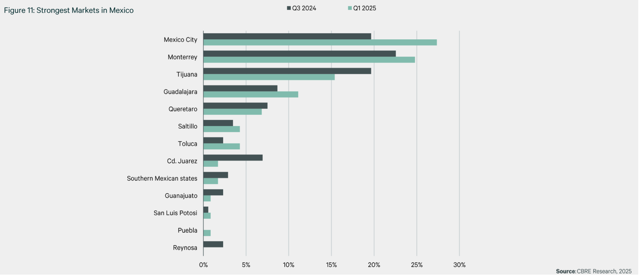La Ciudad de México fue clasificada como el destino de inversión más popular de México. El Área Metropolitana de la Ciudad de México sigue siendo muy activa liderada por la demanda interna de logística.