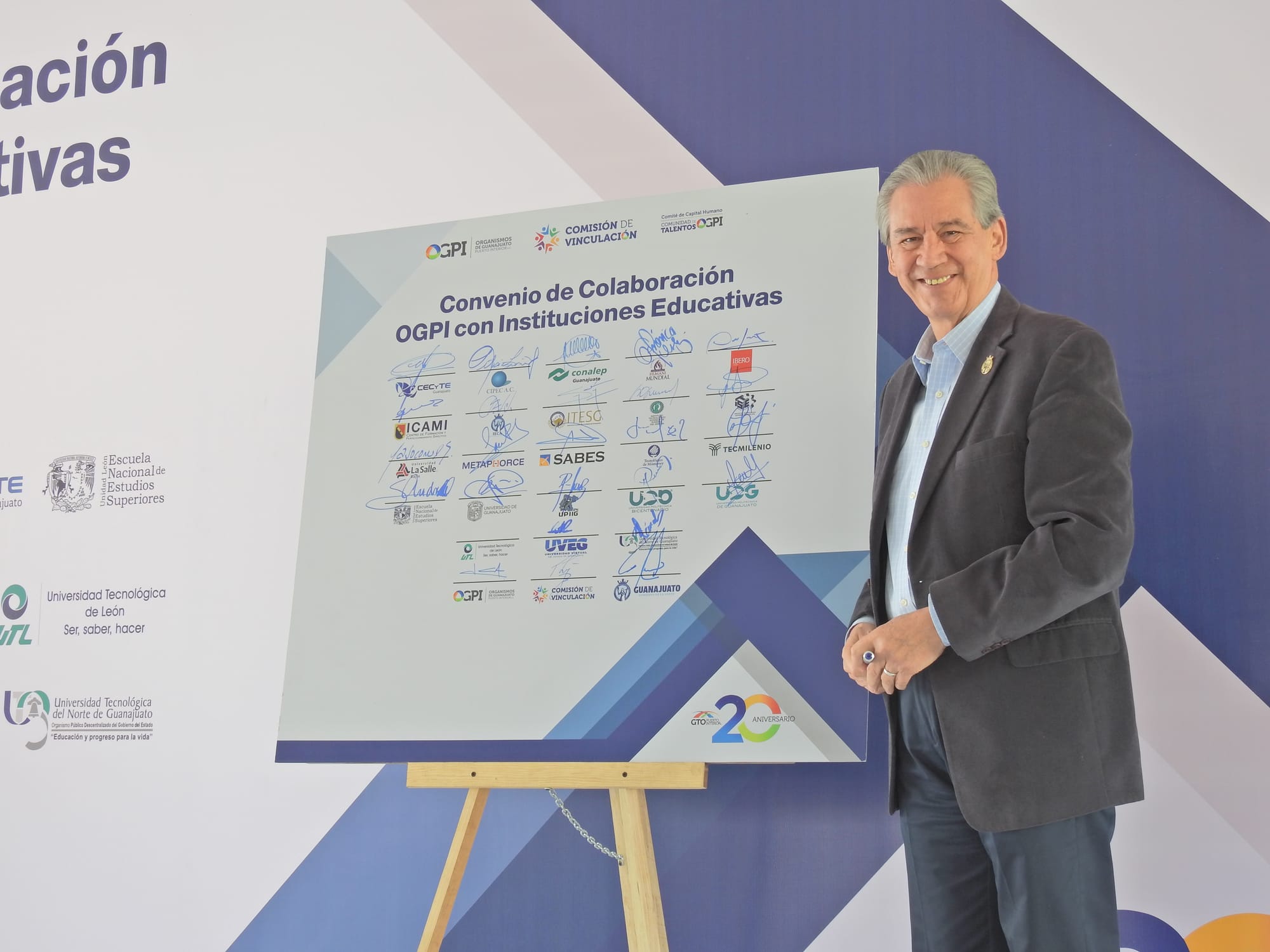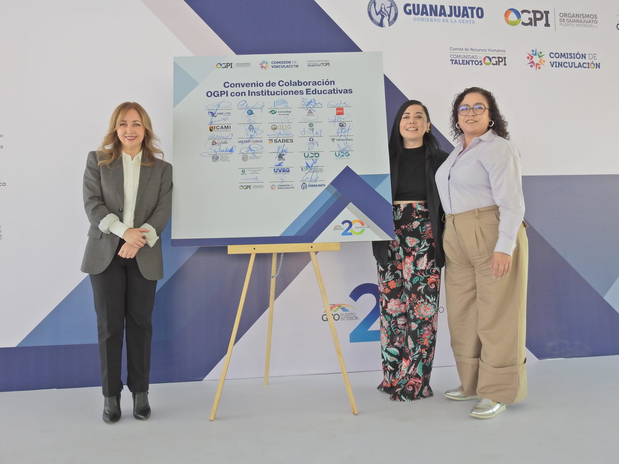 Las instituciones que suscribieron este compromiso de colaboración fueron el Comité de Capital Humano de OGPI, la Comisión de Vinculación de OGPI, Organismos de Guanajuato Puerto Interior, y Guanajuato Puerto Interior en representación del Gobierno de la Gente; por su parte, las instituciones fueron la Universidad Iberoamericana León (IBERO León), Instituto Tecnológico Superior de Purísima del Rincón, CIPEC A.C., la Universidad de Guanajuato, el Tecnológico de Monterrey, Tecmilenio, CECyTE Guanajuato, la Escuela Nacional de Estudios Superiores UNAM (ENES León), Instituto Tecnológico Superior de Irapuato, Universidad Human Mundial, el Instituto Estatal de Capacitación (IECA), CONALEP Guanajuato, la Unidad Profesional Interdisciplinaria de Ingeniería Campus Guanajuato (UPIIG-IPN), la Universidad SABES, la Universidad Virtual del Estado de Guanajuato (UVEG), la Universidad Tecnológica de León (UTL), la Universidad Politécnica Bicentenario (UPB), el Instituto Tecnológico Superior de Guanajuato (ITESG), METAPHORCE, el Centro de Formación y Perfeccionamiento Directivo (ICAMI), la Universidad La Salle Bajío, la Universidad Politécnica de Guanajuato (UPG) y la Universidad Tecnológica del Norte de Guanajuato (UTNG).