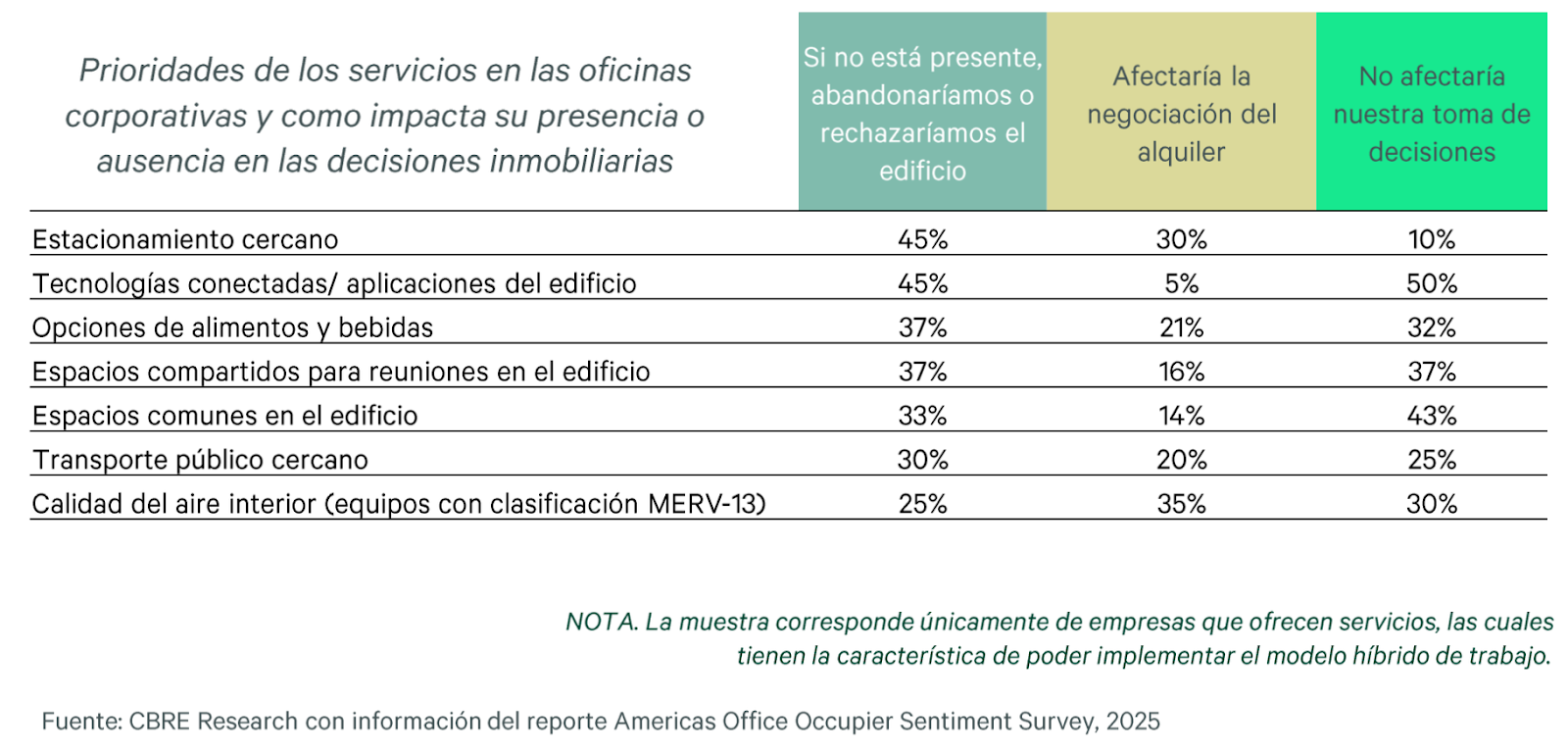 Ciudad de México, a 29 de septiembre de 2025. – CBRE, la empresa líder a nivel mundial en consultoría, comercialización y servicios inmobiliarios, presentó los resultados de su más reciente encuesta de percepción de usuarios de oficinas corporativas en la Ciudad de México correspondiente al primer semestre de 2025, revelando una clara consolidación del modelo híbrido y un renovado interés por ampliar espacios de trabajo entre las empresas.