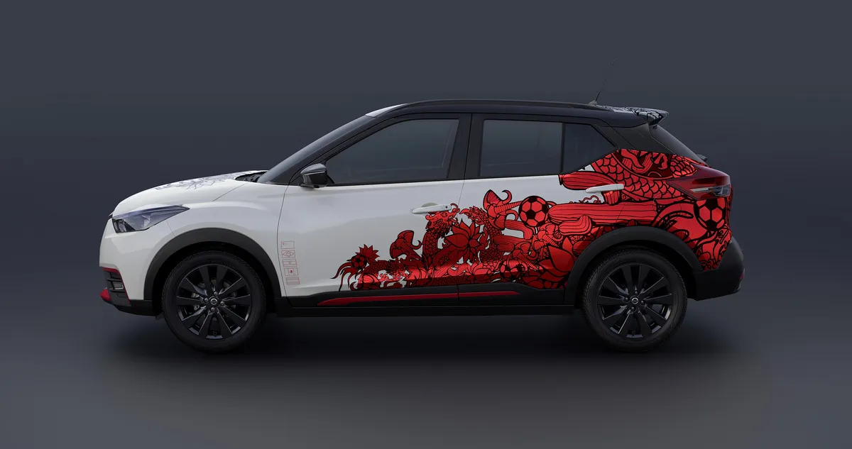 Con un look atrevido y urbano, el concepto conmemorativo de Nissan Kicks, es una combinación en fondo color blanco con aplicaciones en rojo evocando al ADN japonés que recorre cada espacio del vehículo y contrasta con el techo negro brillante que le da un toque innovador y elegante.