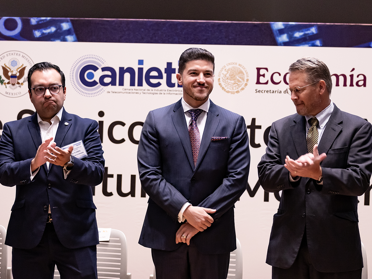En el evento participaron representantes de ambos gobiernos, así como líderes empresariales y académicos, entre ellos Juan Pablo Murra, rector del Tecnológico de Monterrey; Rafael Sánchez Loza, presidente de CANIETI; y Diego Flores, representante de la Secretaría de Economía federal.