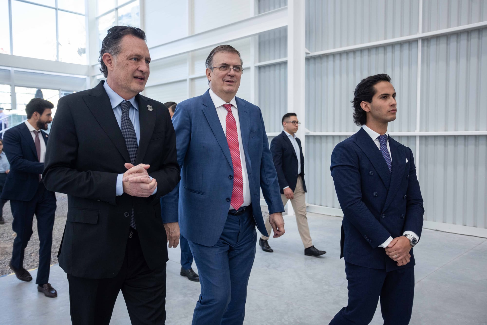 Querétaro, Querétaro, 23 de febrero de 2026.- El gobernador de Querétaro, Mauricio Kuri González, y el secretario de Economía federal, Marcelo Ebrard Casaubón, recorrieron las instalaciones de la primera fábrica de QSM Semiconductores en México, ubicada en el Parque Industrial Tecnológico Innovación, en la comunidad de El Rosario, municipio de El Marqués.