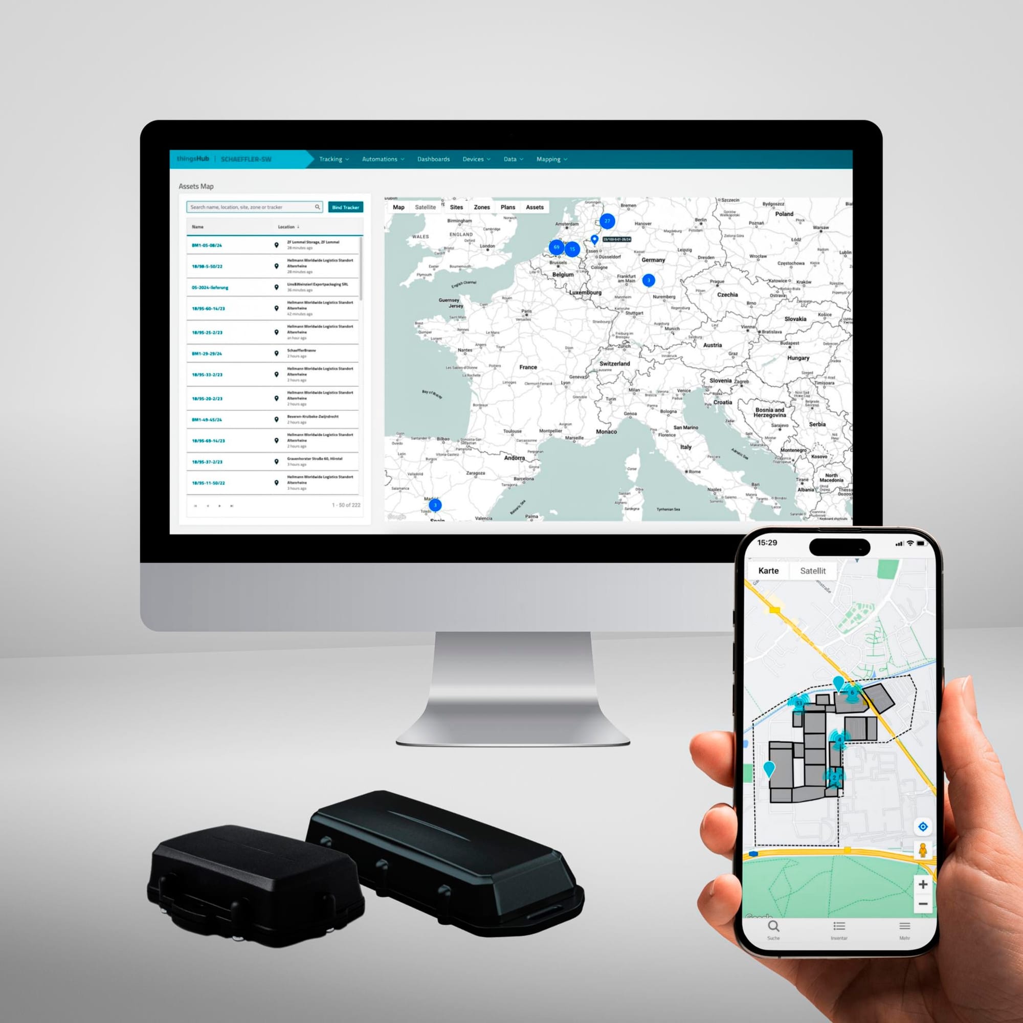 Actualmente, Schaeffler utiliza un total de unos 300 rastreadores GPS. Se centran en el transporte de aplicaciones de rodamientos principales en el sector de la energía eólica. La solución de seguimiento de activos procede del proveedor alemán SmartMakers. Los rastreadores GPS permiten un posicionamiento preciso y envían datos regularmente a una plataforma IoT.