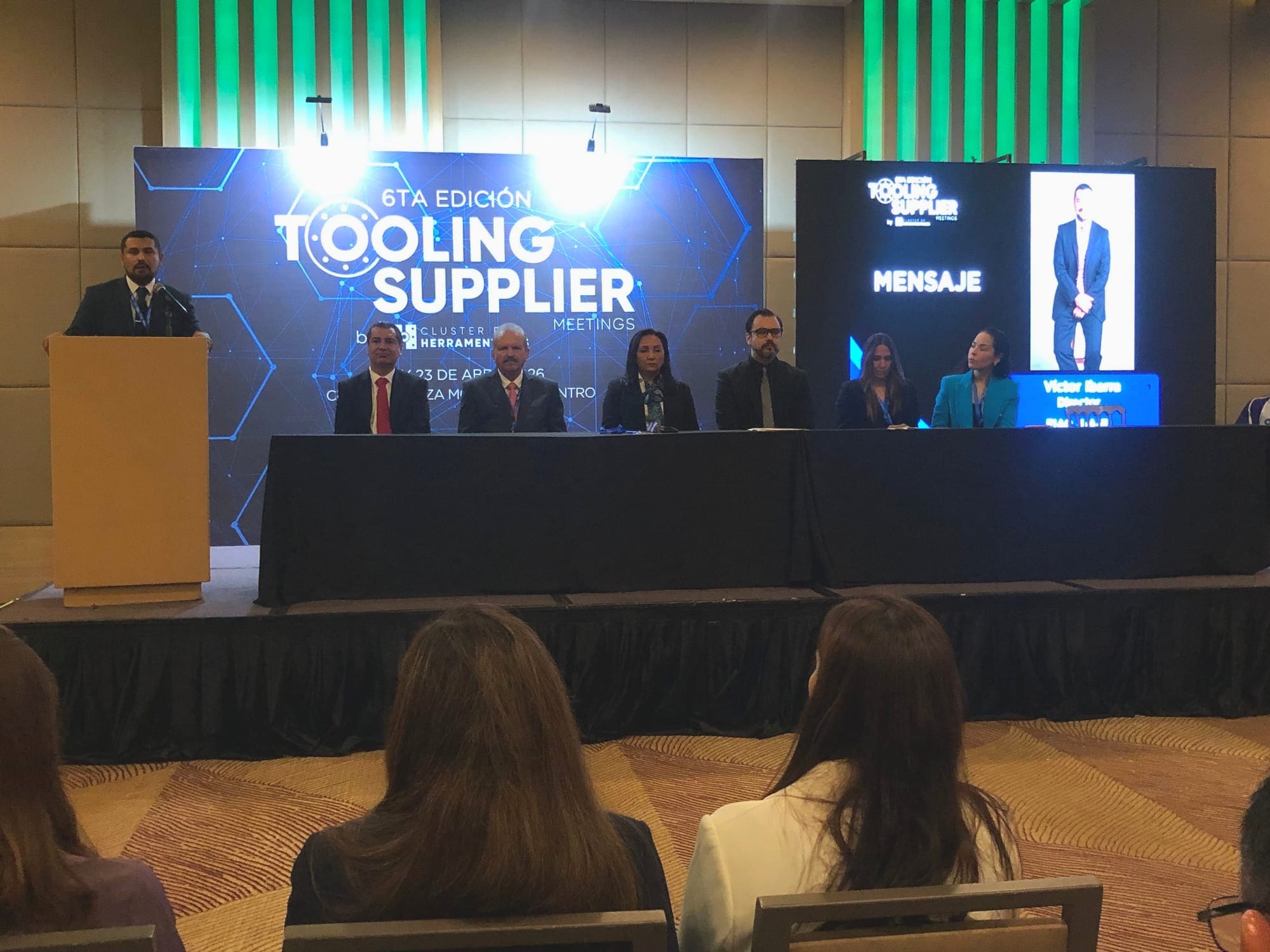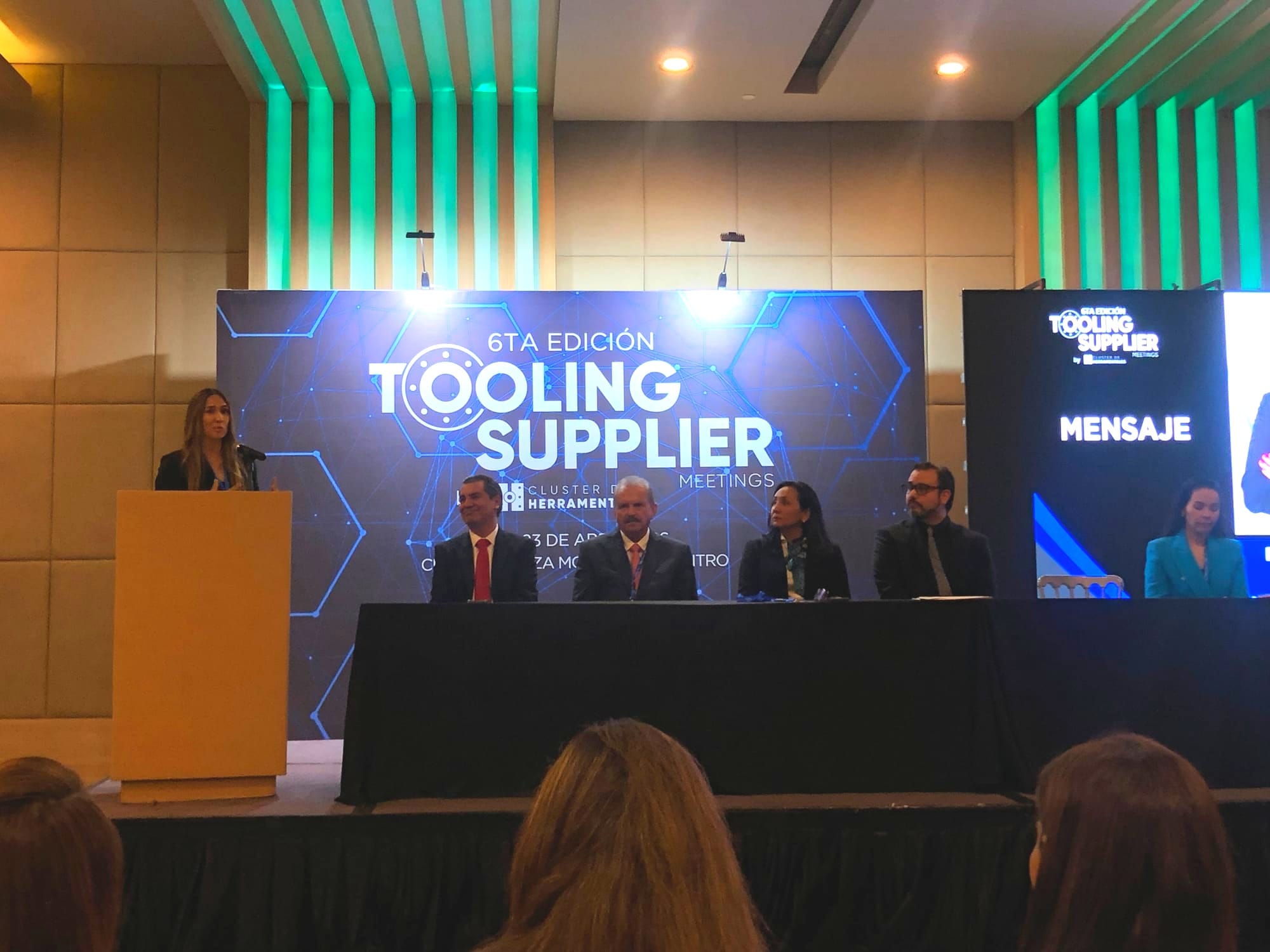 En el presídium estuvieron presentes Betzabé Rocha, titular de la Secretaría de Economía de Nuevo León; Rolando Rodríguez, presidente de Cluster Herramentales y CEO de Lego; Blanca López, vicepresidenta de Cluster Herramentales; Gabriela Aguilera, presidenta del Comité de Mercado de Cluster Herramental; Víctor Ibarra, director de la Escuela Industrial y Preparatoria Técnica Álvaro Obregón de la Universidad Autónoma de Nuevo León; Homero García, representante de la Asociación Mexicana de Acabados Superficiales MAS; y Alfonso Peña Morales, director general de Cluster Herramentales.